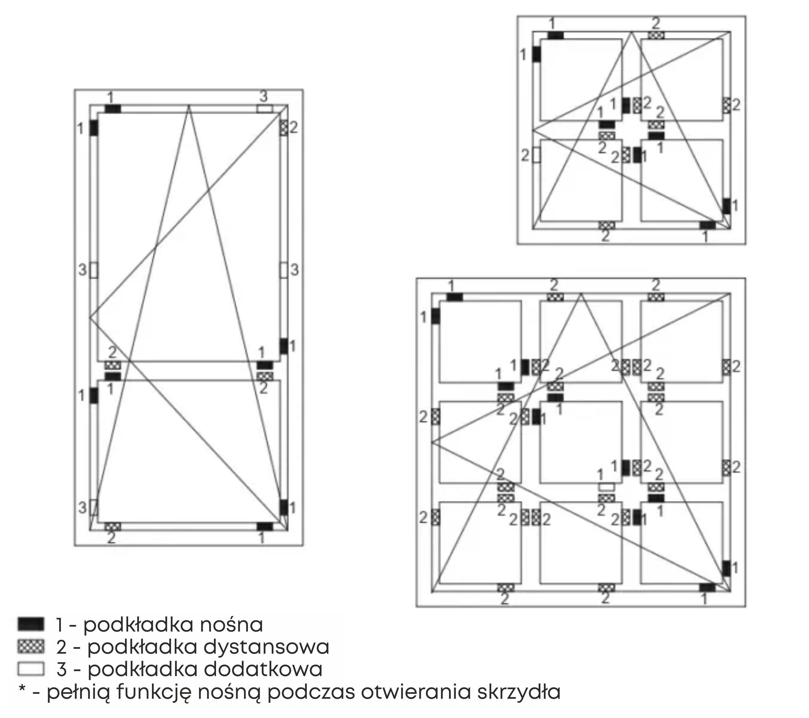 W blokach drzwi balkonowych, a także wyrobach z wzmocnionymi mechanizmami ryglującymi, zalecana jest instalacja dodatkowych podkładek w miejscach ryglowania.
