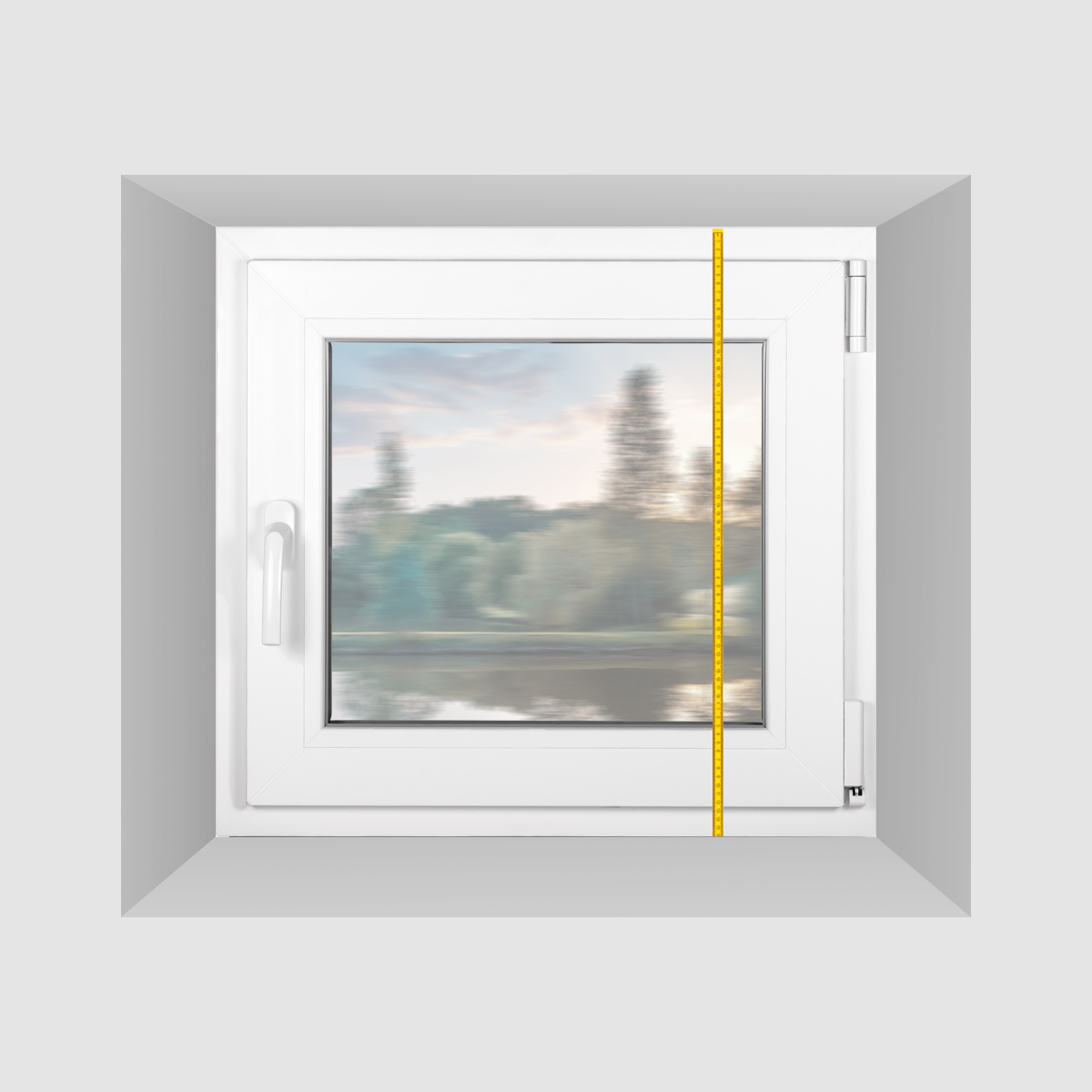 Wysokość ramy okiennej określa się poprzez odjęcie szczeliny montażowej u góry (15-20 mm) i wysokości profilu bazowego (30 mm) od wysokości otworu okiennego (najmniejsza wartość z trzech pomiarów pionowych).