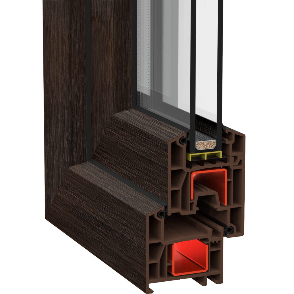 Nowoczesne technologie pozwalają wybrać okna o różnej laminacji dwustronnej. Na przykład wewnątrz okna mogą być w kolorze antracytu, a na zewnątrz w kolorze dębu, zachowując jednolity wygląd z fasadą budynku.