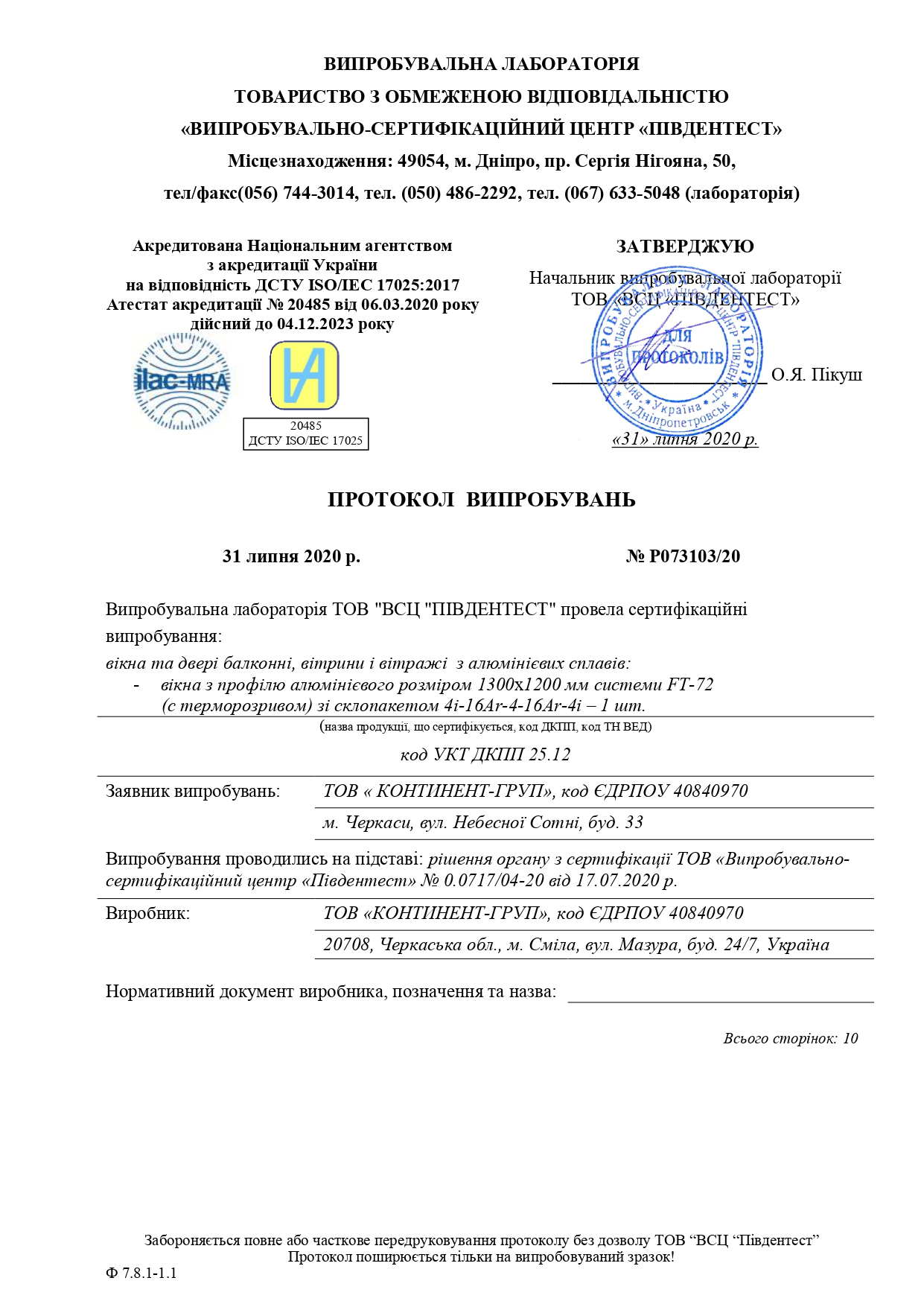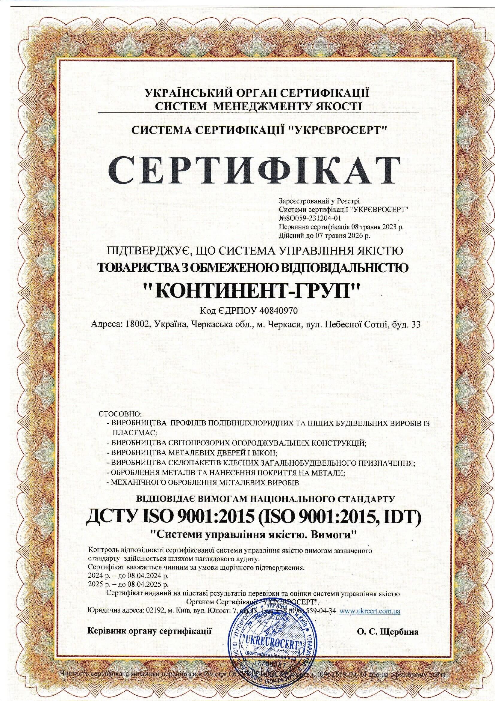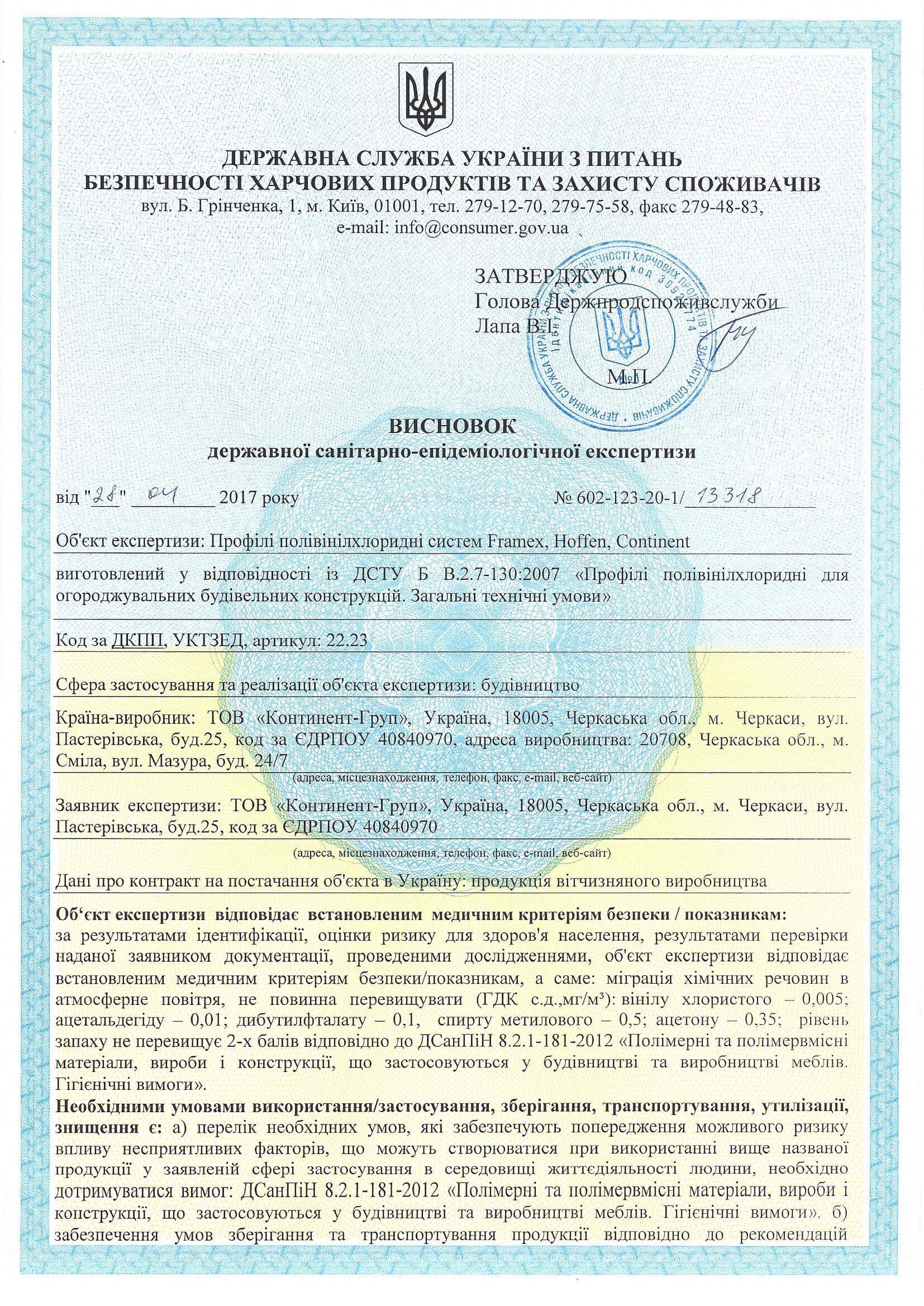 Systemy profilowe posiadają certyfikaty zgodności z wymogami normatywnymi Ukrainy i pozytywnie przeszły testy w Instytucie Technologii Okien – ift Rosenheim (Rosenheim), Niemcy.