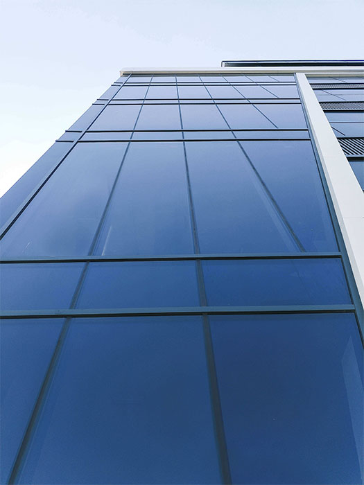 Dzięki temu połączeniu powstała czysta szklana powierzchnia, która optycznie powiększa przestrzeń i podkreśla styl budynku.