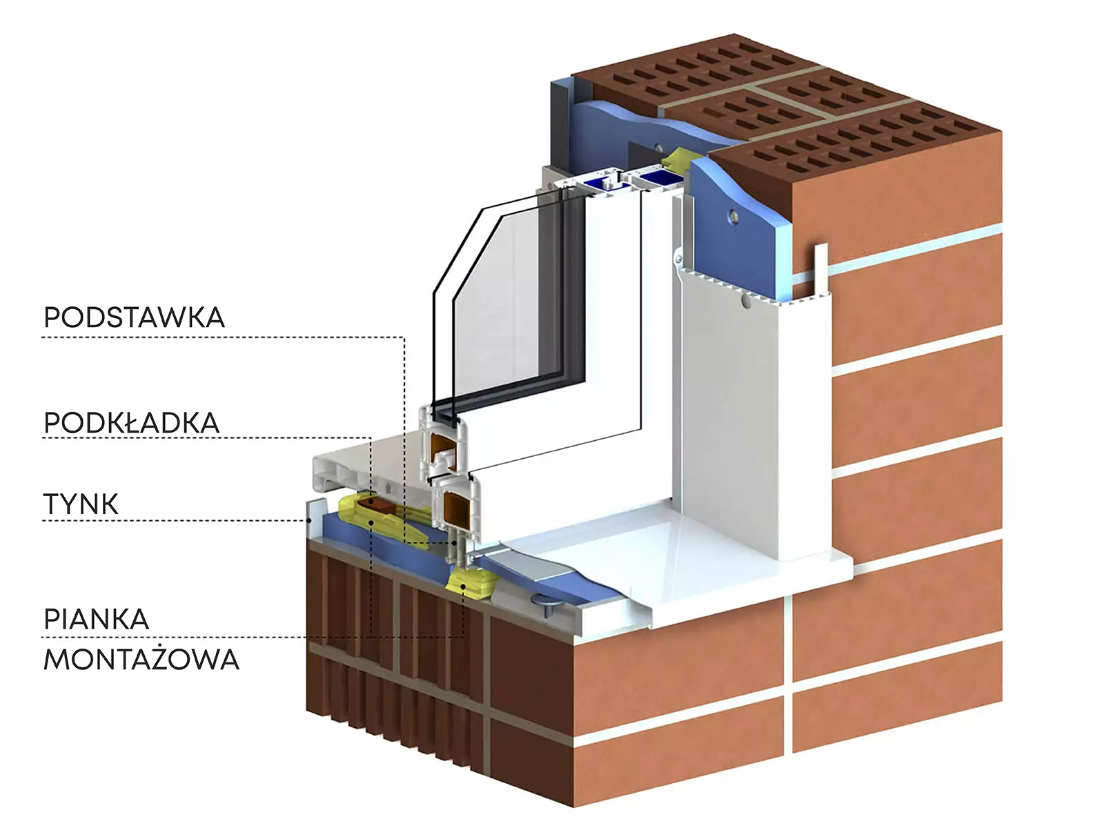 To właśnie na profil podkładowy przypada całe obciążenie wywierane przez okno z PVC. Profil ten jest przymocowany do ramy okiennej za pomocą śrub, a przestrzenie między parapetem, okapnikiem i profilem podkładowym są wypełniane pianą montażową.