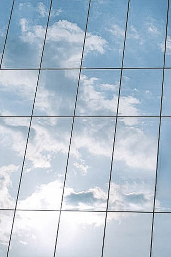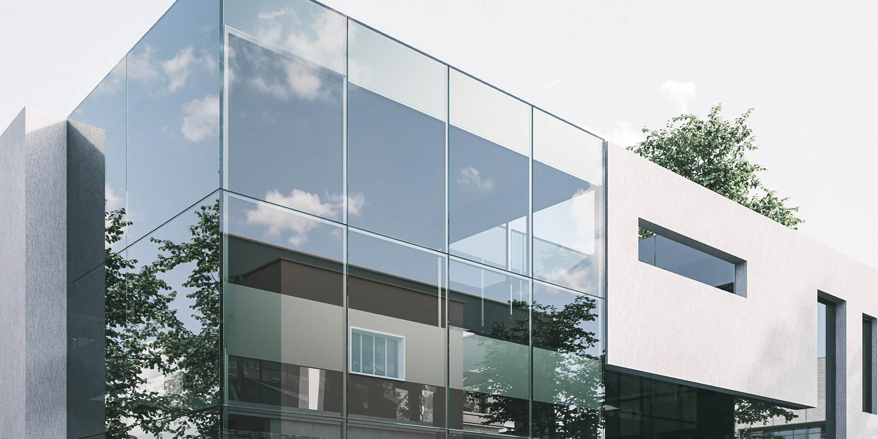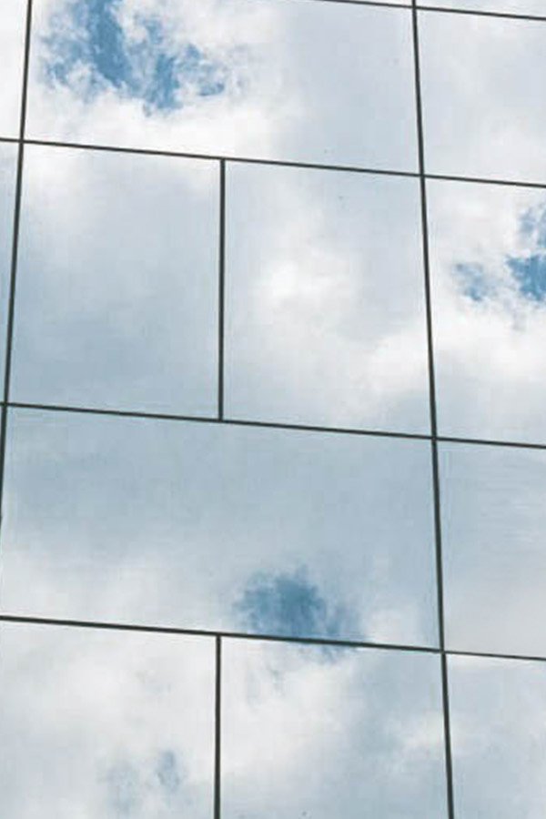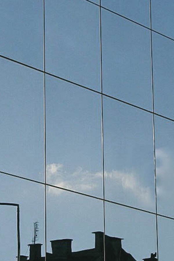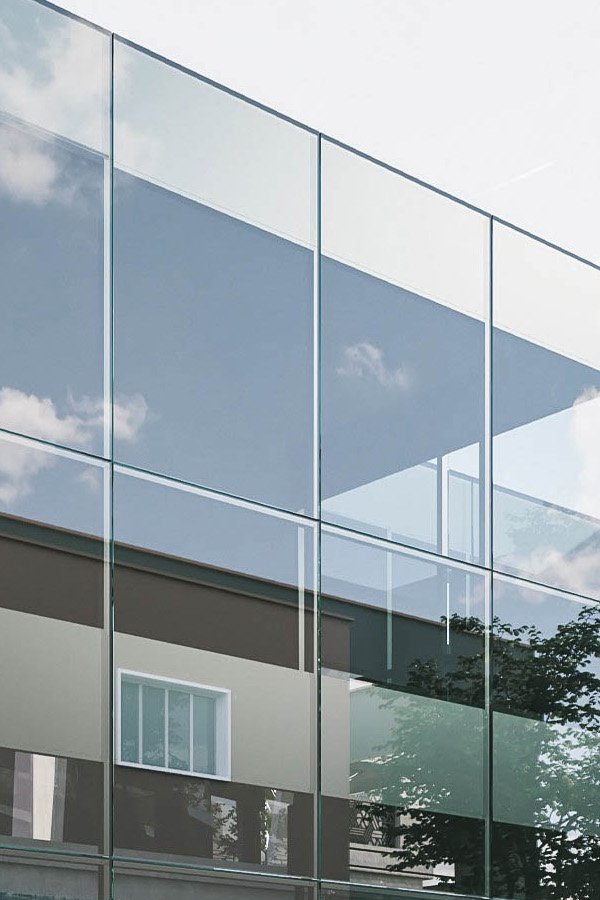 Wygląd strukturalnej fasady przypomina jednolitą szklaną ścianę bez widocznych aluminiowych profili, z pionowymi i poziomymi szczelinami.