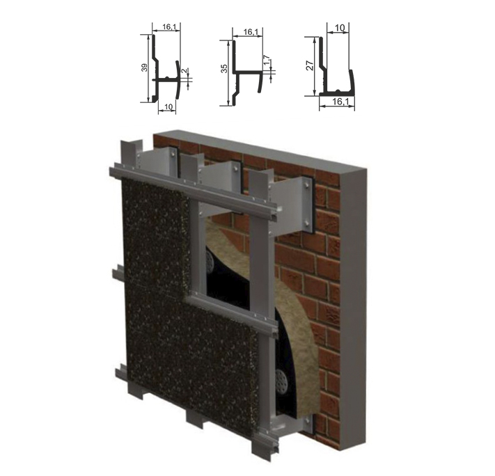 System konstrukcji montowanych na nośnych ścianach budynków w celu zmiany architektonicznego designu, ochrony przed wpływami zewnętrznymi i umożliwienia ocieplenia w celu oszczędzania energii.