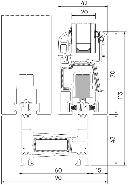 Widoczna część profilu (rama + skrzydło) | 113 mm |