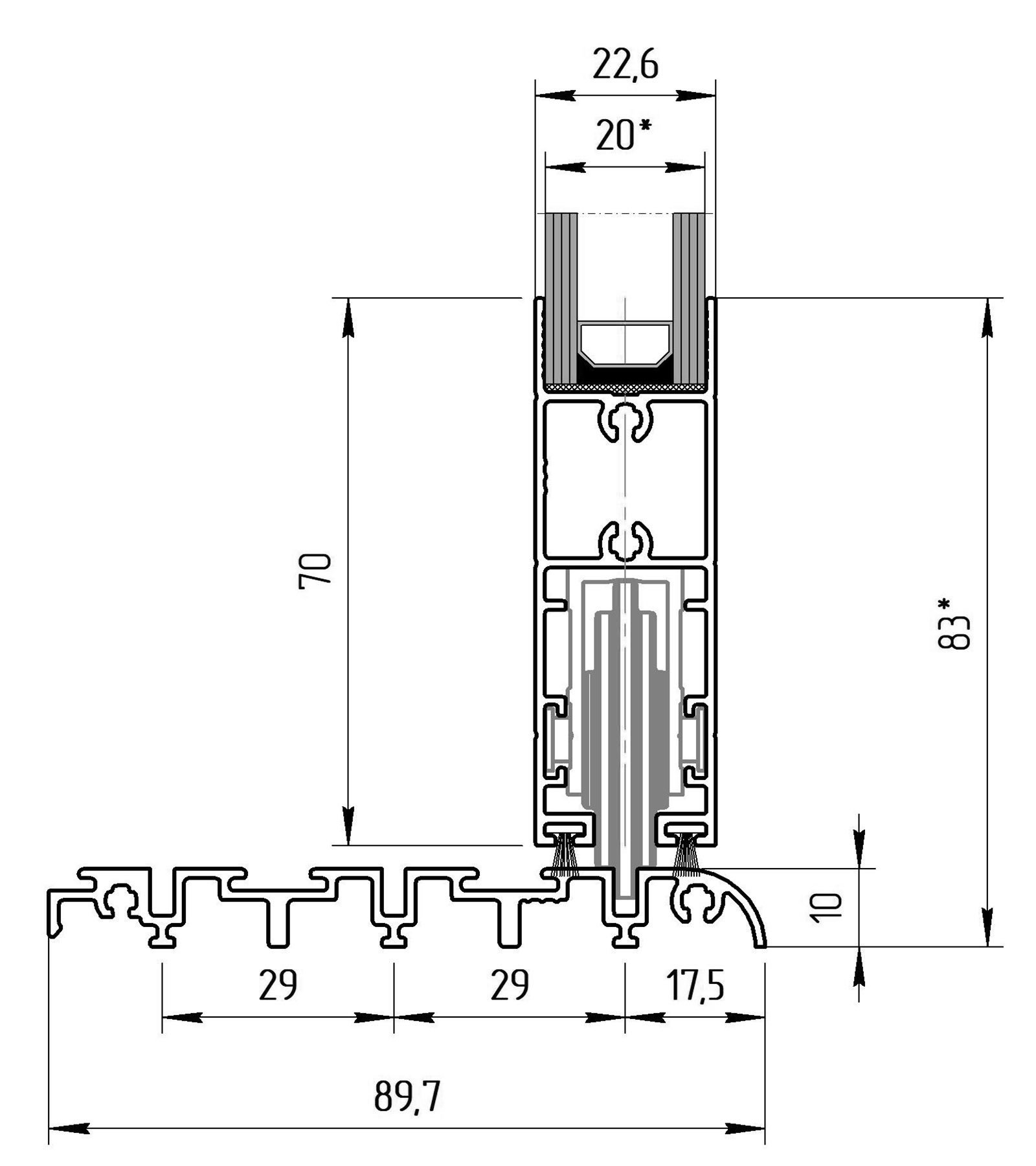 Posiada wysokie parametry eksploatacyjne i konkurencyjną cenę. Przeznaczony do produkcji zimnych okien i drzwi przesuwnych, a także przegród. Możliwość instalacji niskiego progu. System dodaje wyrafinowania i elegancji tam, gdzie jest stosowany.