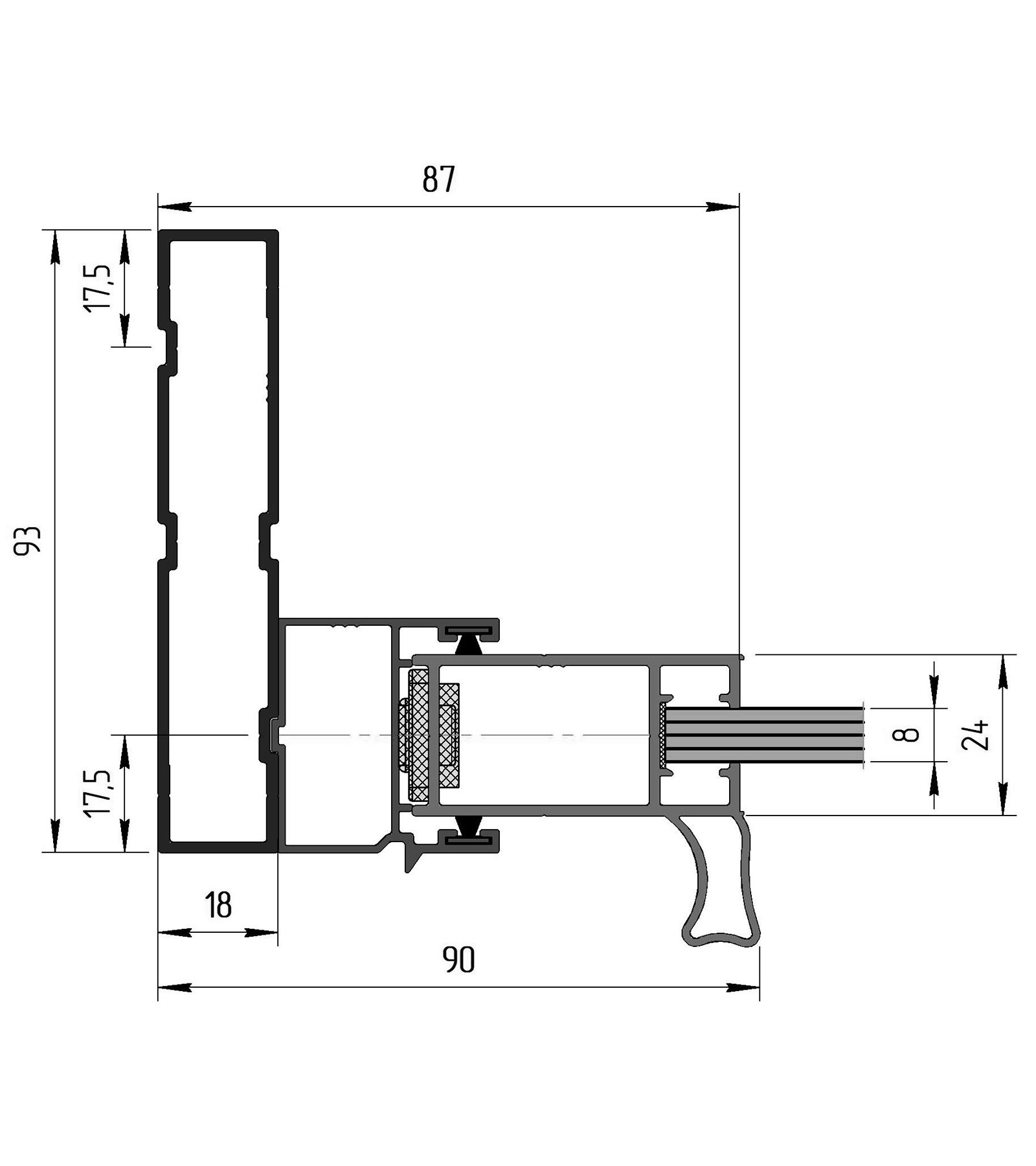 Widoczna część profilu (rama + skrzydło) 95 mm