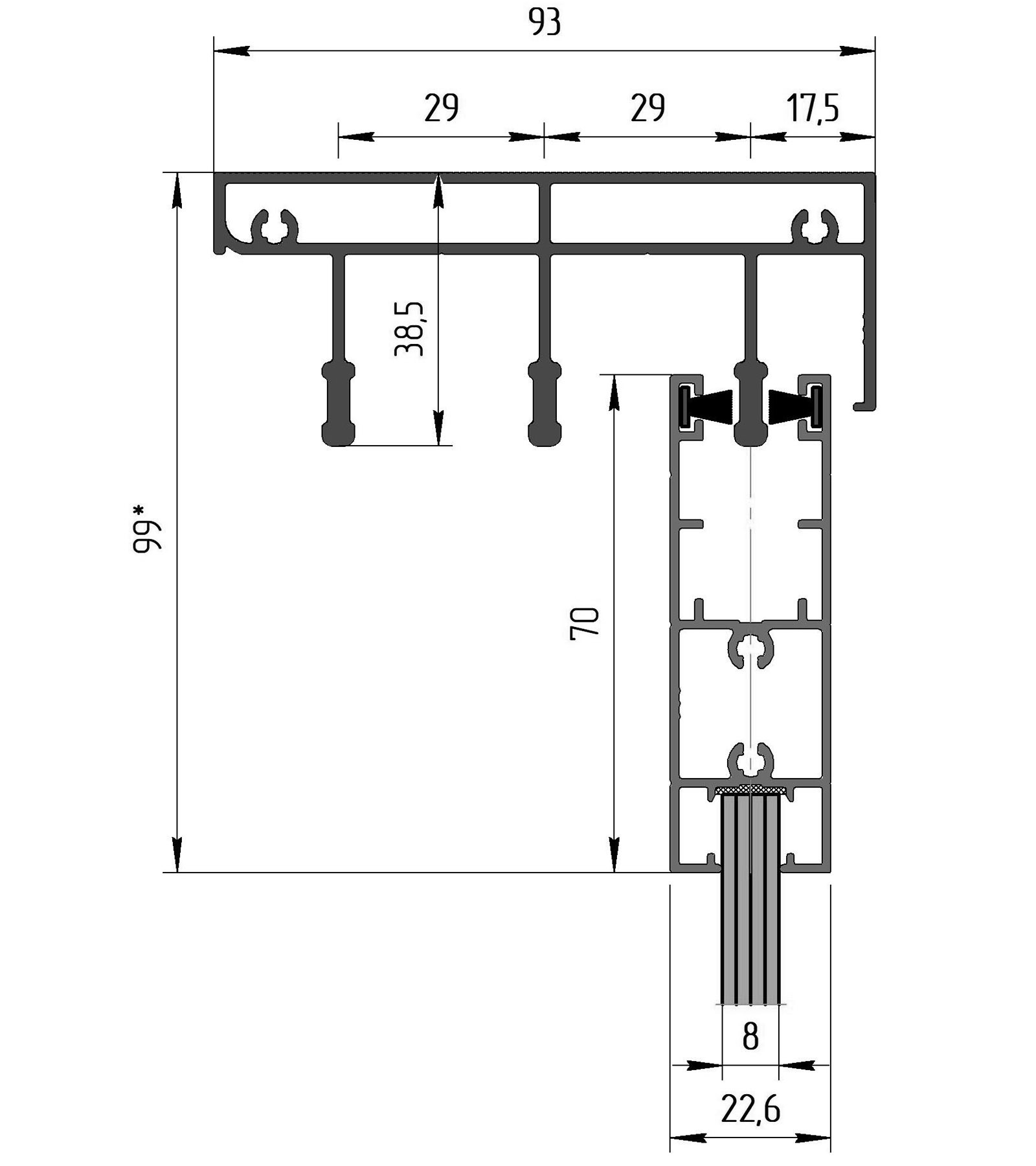 Elegancki design. Specyfikacje techniczne i różne opcje pokrycia systemu profili pozwalają na realizację eleganckich opcji systemów przesuwnych oraz przegród biurowych.