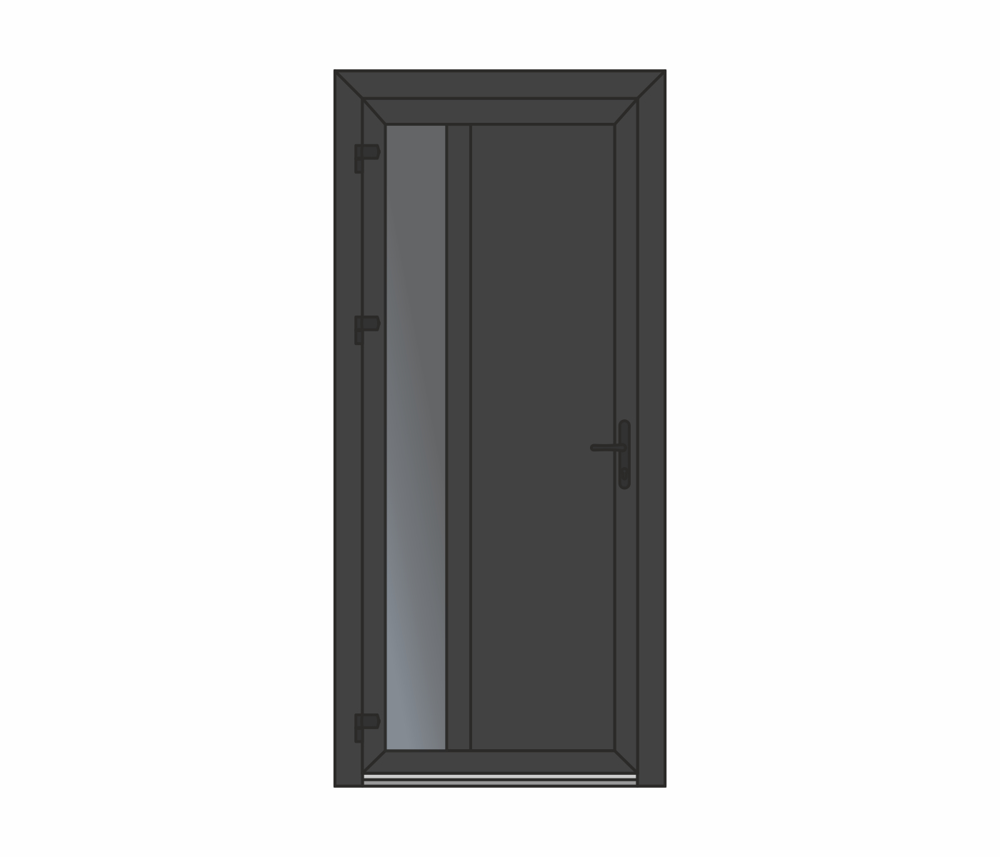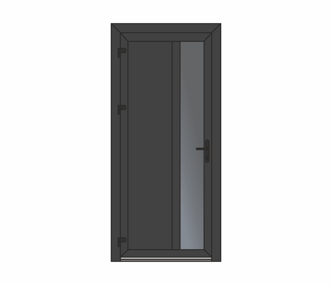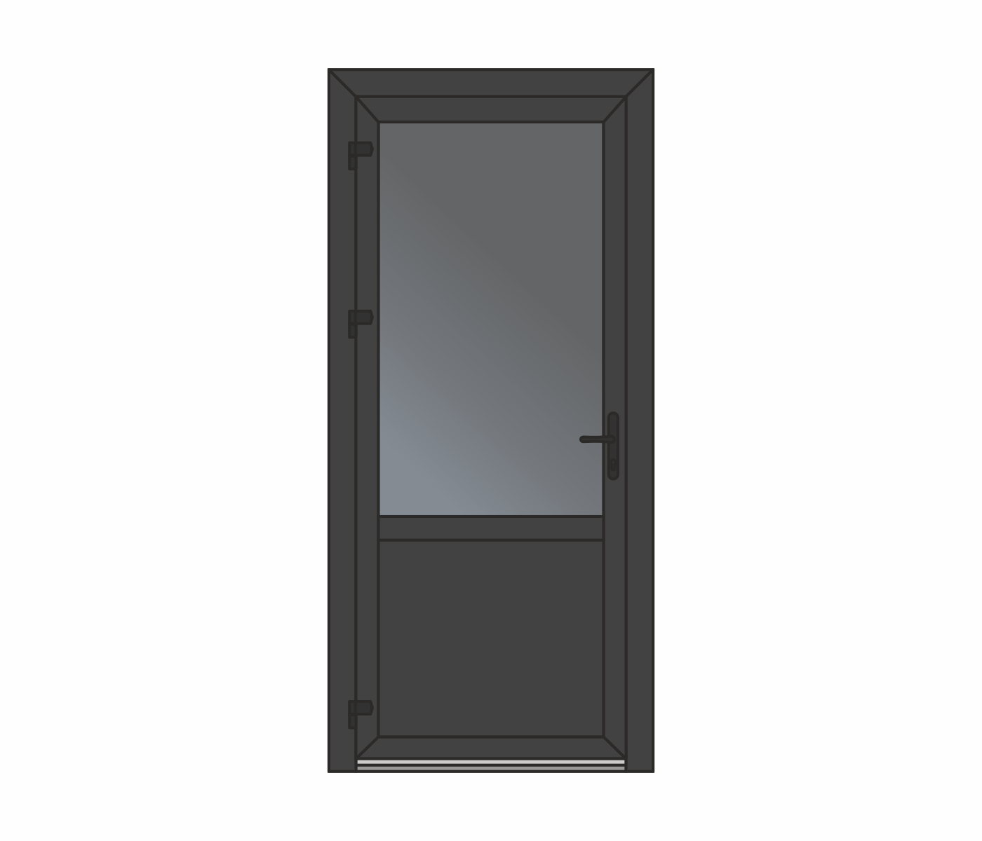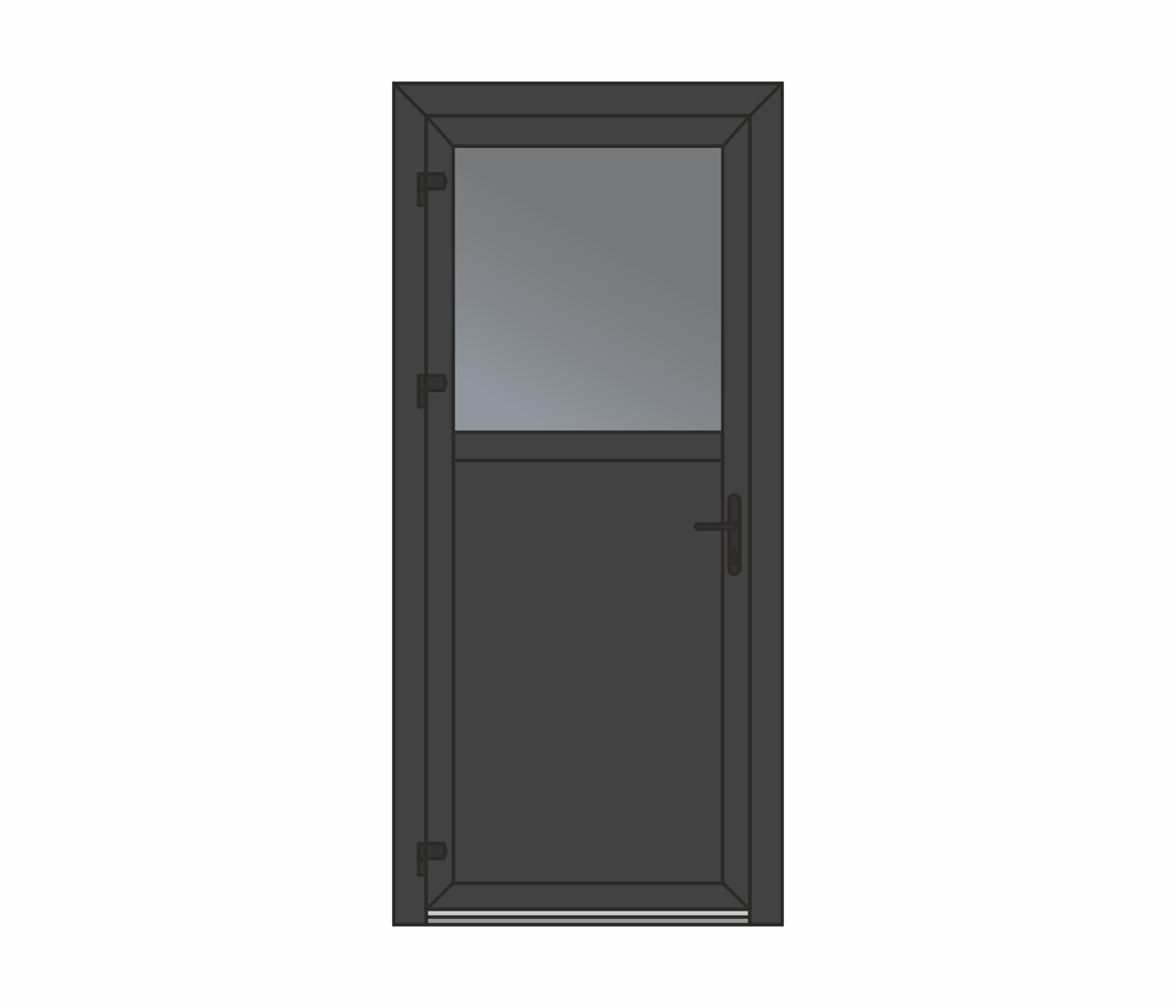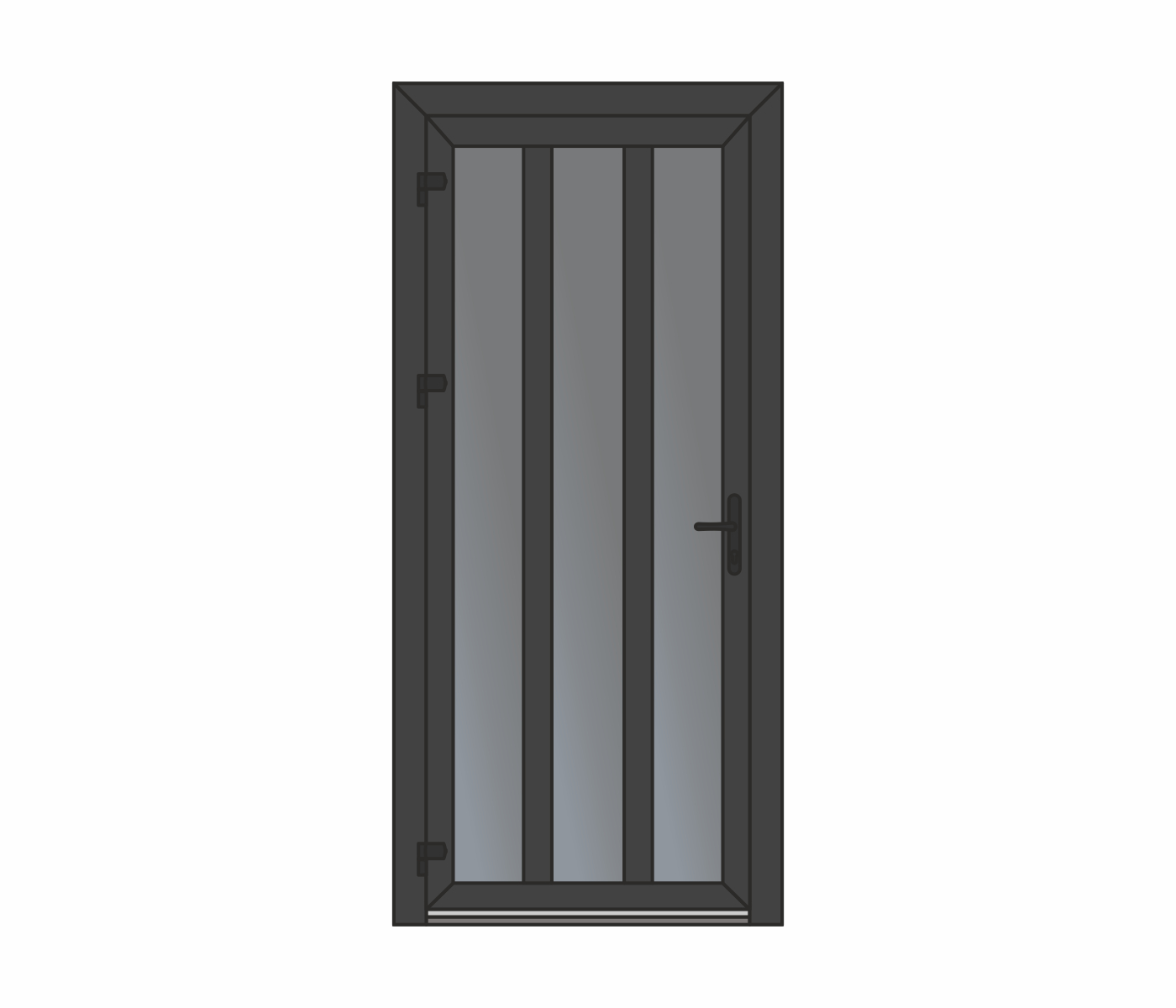 Wypełnienie – płyta warstwowa lub szyba zespolona wbudowana w profil skrzydła drzwiowego, możliwość zastosowania impostu. Niezawodny, wygodny w użyciu, ekonomiczny.