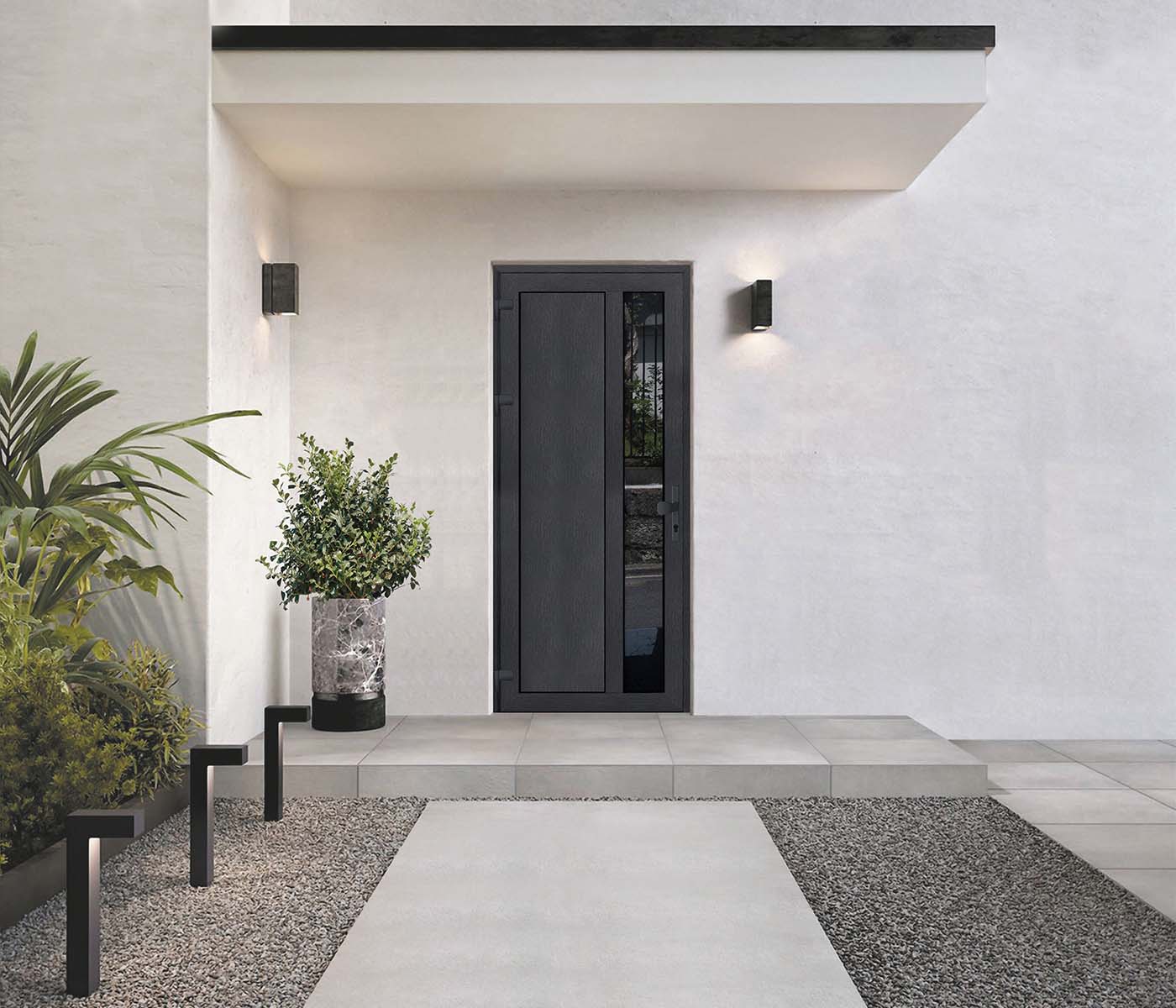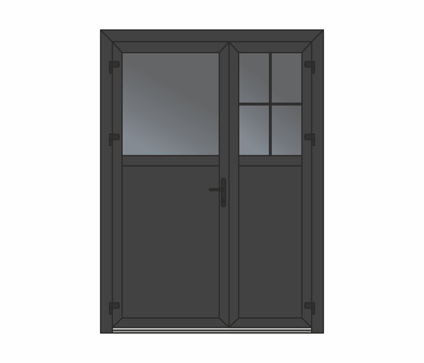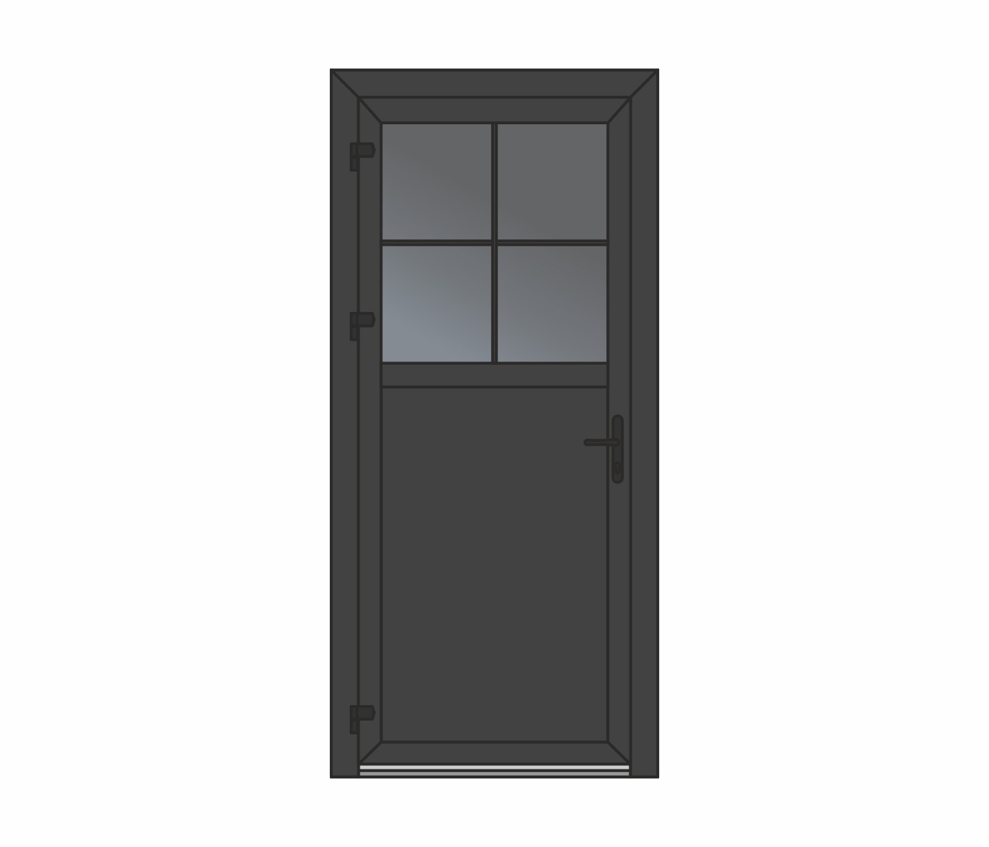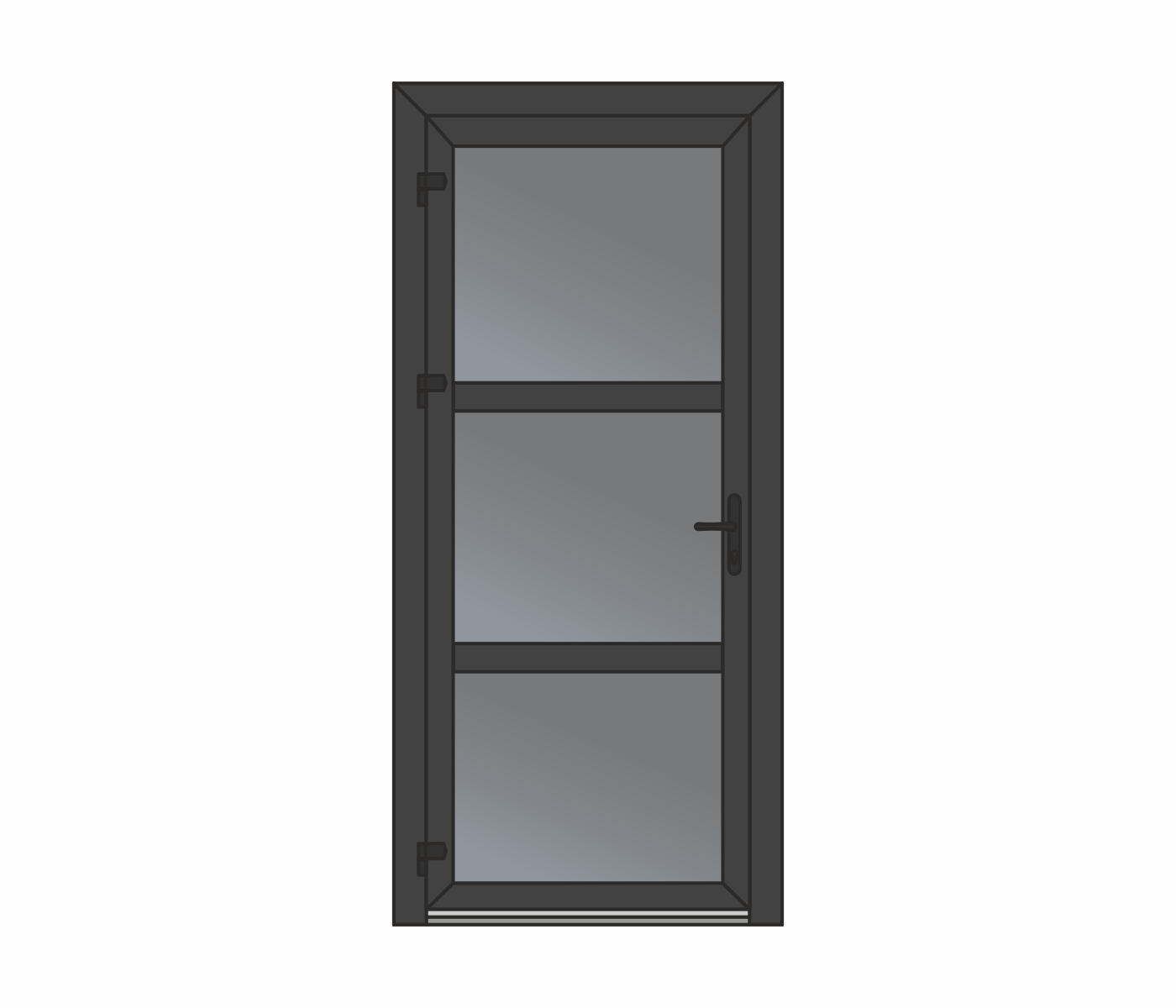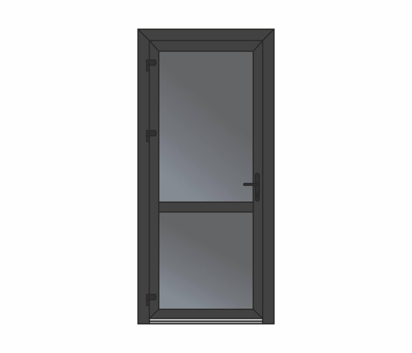 Wypełnienie – płyta warstwowa lub szyba zespolona wbudowana w profil skrzydła drzwiowego, możliwość zastosowania impostu. Niezawodny, wygodny w użyciu, ekonomiczny.